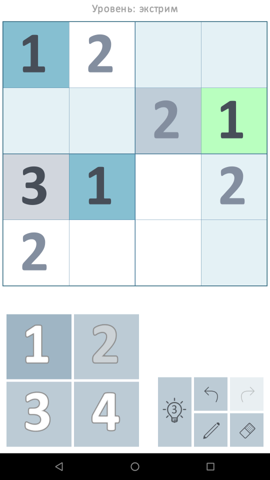 - - 4 difficulty levels for all sizes of Sudoku.