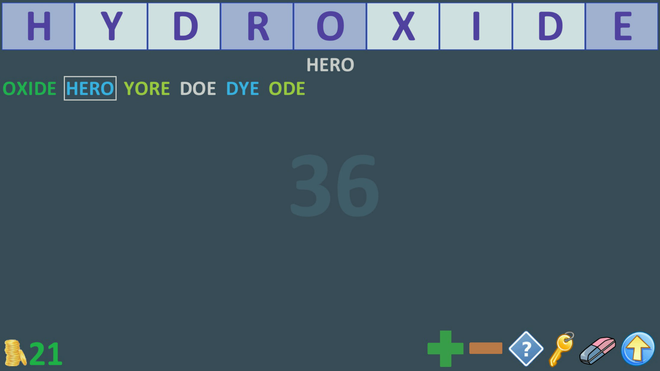 You can see the word's meaning by clicking it. The more words you open, the more points you get. Each letter gives you one point. These points allow you to use the tips if necessary.