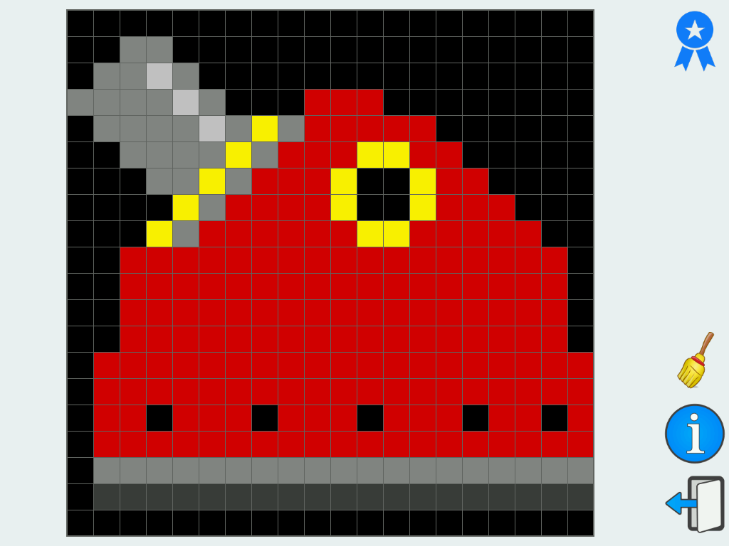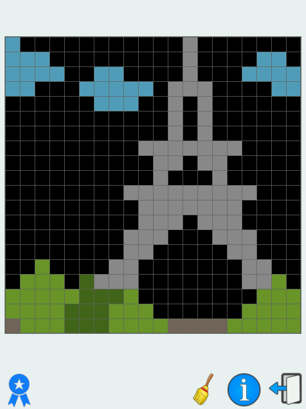 For zoom use Pinch-to-zoom gesture by moving two fingers farther apart or closer together while touching the display. Drag zoom grids by moving finger. Use double tap with finger or select eraser to drop painted squares.